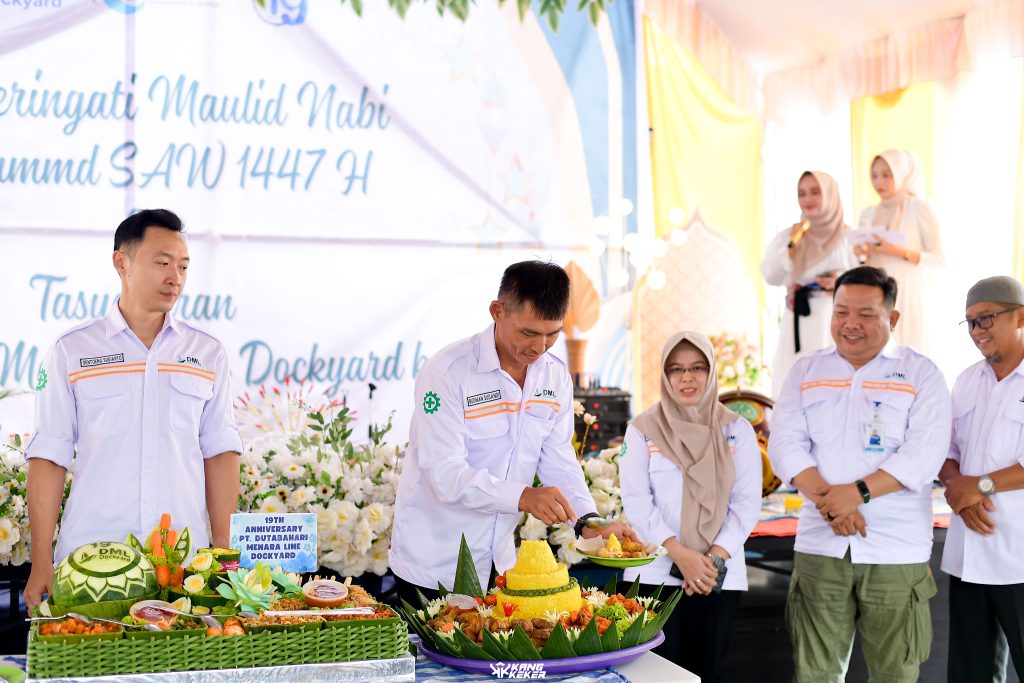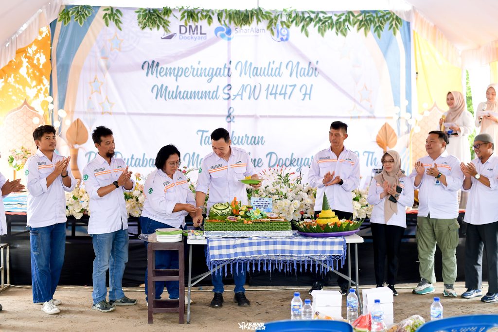 Suasana kebersamaan semakin terasa hangat dengan adanya pemotongan tumpeng sebagai simbol rasa syukur dan harapan agar PT. DML Dockyard terus berkembang, inovatif, serta memberikan manfaat yang lebih luas bagi pelanggan, mitra kerja, dan masyarakat sekitar.